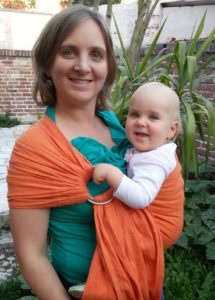 Portage ventral sling tissé