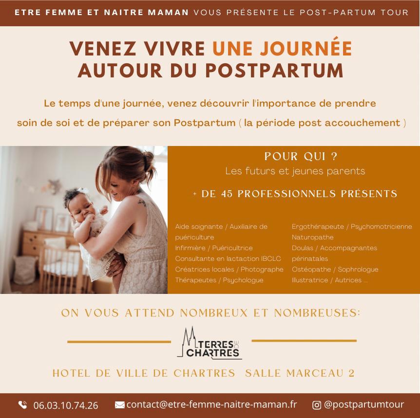 Venez nous rencontrer sur notre stand au Post Partum Tour qui se déroulera le 21 septembre prochain à l’Hôtel de Ville de Chartres.