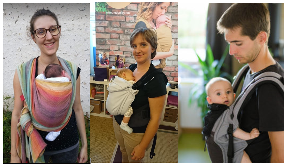 Nous proposons des ateliers de portage individuels ou collectifs, ouverts aux Papas, aux Mamans, aux Assistantes maternelles, aux Grands parents, aux Baby-sitters… et aux Bébés, qui sont les plus concernés !