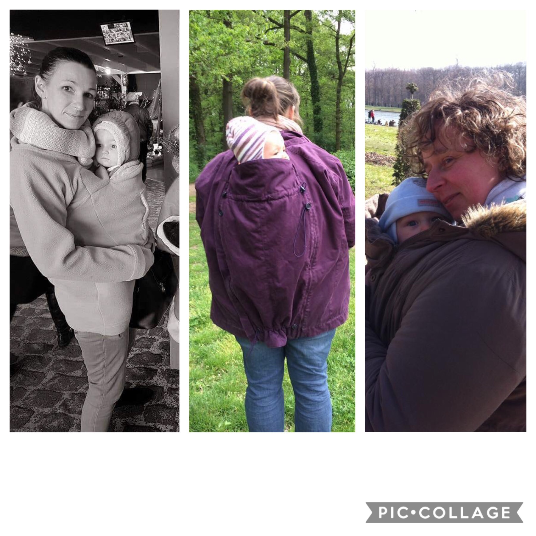 On privilégiera un manteau de portage (ou un manteau trop grand qui pourra couvrir bébé), une couverture mise sur le dos de l’enfant, un poncho qui couvre tout le monde…